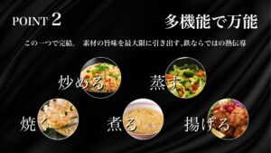 焼く・炒める・煮る・蒸す・揚げるをこれ一台で。